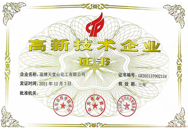 公司產品符合國家的產業政策,各種手續齊全,通過了環保、衛生、消防、安全生產許可等各項驗收,企業化學品安全標準化三級達標驗收,并且通過了ISO9001質量管理體系認證、ISO14001環境管理體系、ISO45001職業健康管理體系,先后被有關部門授予“市級重合同守信用企業”“消費者滿意單位”“質量、計量管理先進單位”“勞動關系和諧企業”“企業免檢單位”“淄博市專精特新中小企業”“山東省化工明星單位”“山東化工發展潛力50強”“淄博市智能車間”“山東省創新型中小企業”“科技型中小企業”“高新技術企業”“山東省專精特新”等稱號。